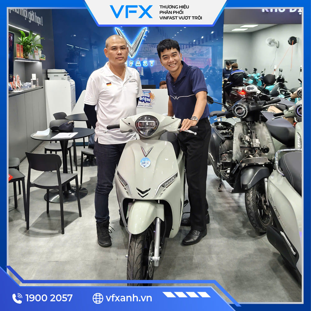 Trong thời gian triển khai chương trình ưu đãi cuối năm, nhiều khách hàng đã lựa chọn VinFast Feliz 2025 và hoàn tất thủ tục nhận xe nhanh chóng tại VFX. Hình ảnh khách hàng nhận xe thực tế thể hiện quá trình bàn giao minh bạch, rõ ràng và đúng cam kết.